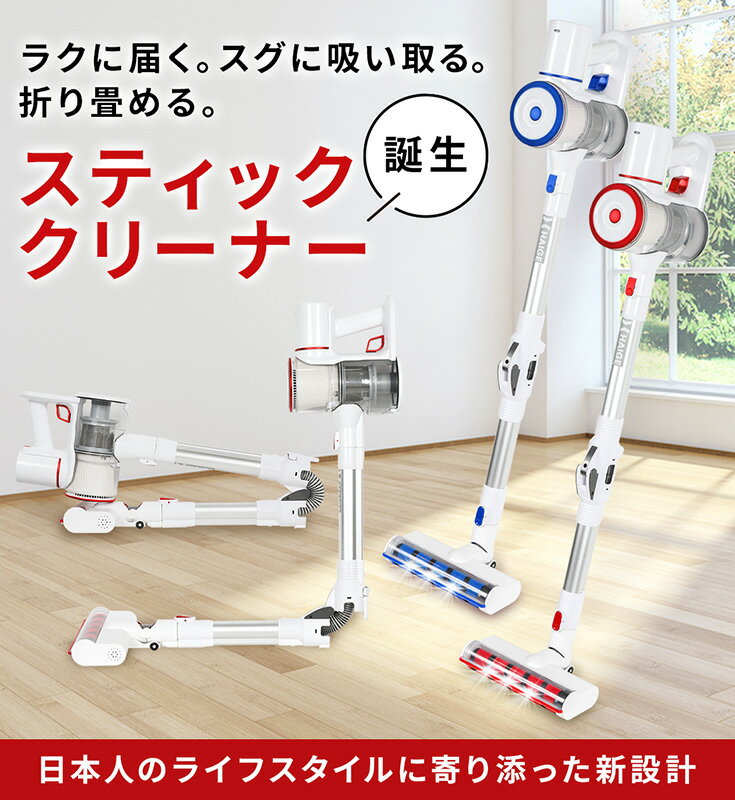 スティッククリーナー 掃除機 中折パイプ 吸引力22000Pa [コードレス サイクロン 折り畳み式 折畳み コンパクト収納 スティック式クリーナー]/HG-K81【1年保証】