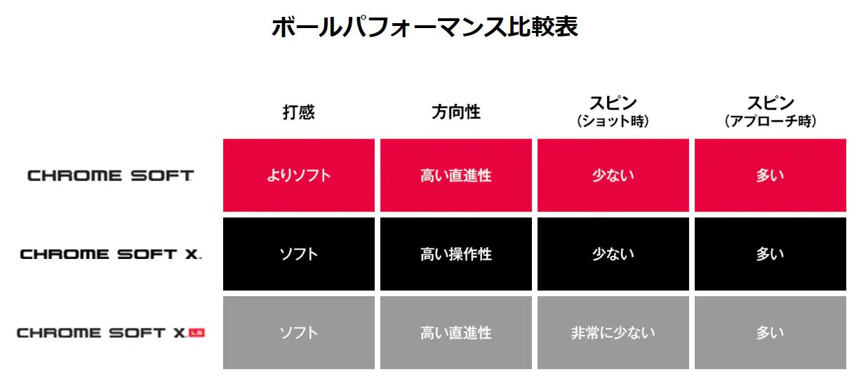 商品情報 すべてのショットを風に負けない強弾道へ 4ピース構造などはそのままに、ロングショットのボール初速を向上 前作のCHROME SOFT Xボールは、ツアープロからも大変評価の高いものでした。