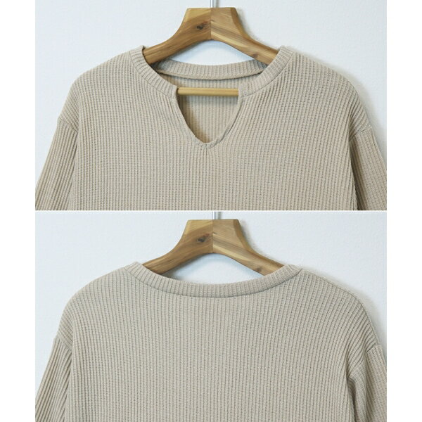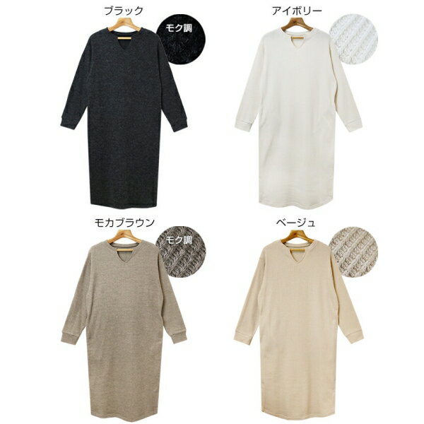 起毛 ワッフル キーネック 長袖 ワンピース [キャンセル・変更・返品不可]