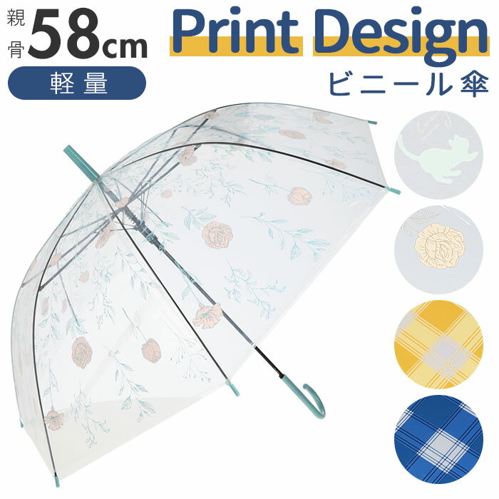 ビニール傘 定番 雨傘 レディース 58cm ビニル傘 ビニ傘 透明 クリア 猫 チェック 花 デザイン カジュアル 雨具 メンズ おしゃれ かわいい 通学 通勤