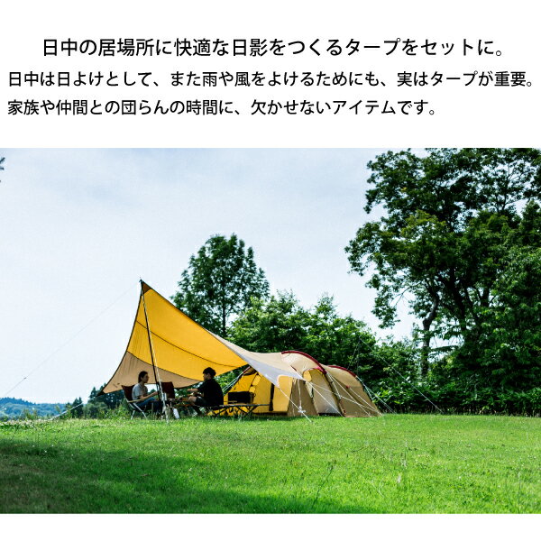 ●日中の居場所に快適な日影をつくるタープをセットに。