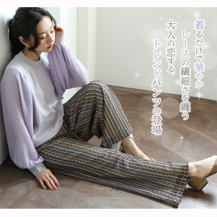 【332163/12グレー、82ブルー】/【3/5】モデル 身長【163cm】 【LL-3L(タグ3L)サイズ着用】 コーデ商品…Tops 楽ちん細魅せ ストライプレースパンツ 縦柄レースでスッキリ美脚効果! ストレッチで着心地も抜群なワイドパンツ モデル 身長【163cm】 【LL-3L(タグ3L)サイズ着用】 コーデ商品…[左]Tops[右]Outer モデル 身長【163cm】 【LL-3L(タグ3L)サイズ着用】 コーデ商品…Tops ■新商品はこちら ■売れ筋ベスト50はこちら ■他のパンツはこちら LL-3L(タグ3L)サイズ着用 ゆったりと着用できました。