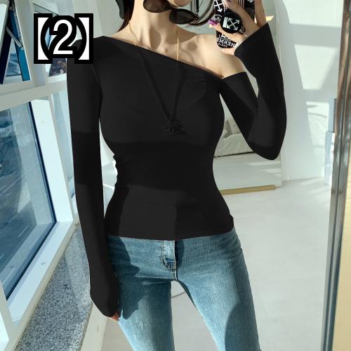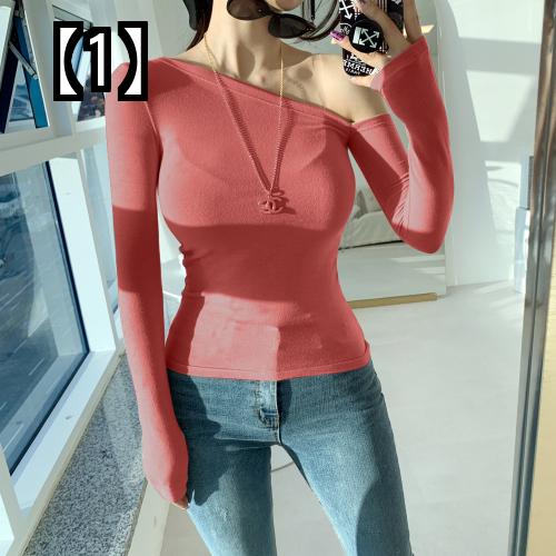肩だし トップス レディース 長袖 かわいい セクシー 春秋 オフショルダー タイト 伸縮性 赤 黒 アプリコット【1】赤 / S【2】黒 / S【3】アプリコット / S【1】赤 / M【2】黒 / M【3】アプリコット / M【1】赤 / L【2】黒 / L【3】アプリコット / L【1】赤 / XL【2】黒 / XL【3】アプリコット / XL